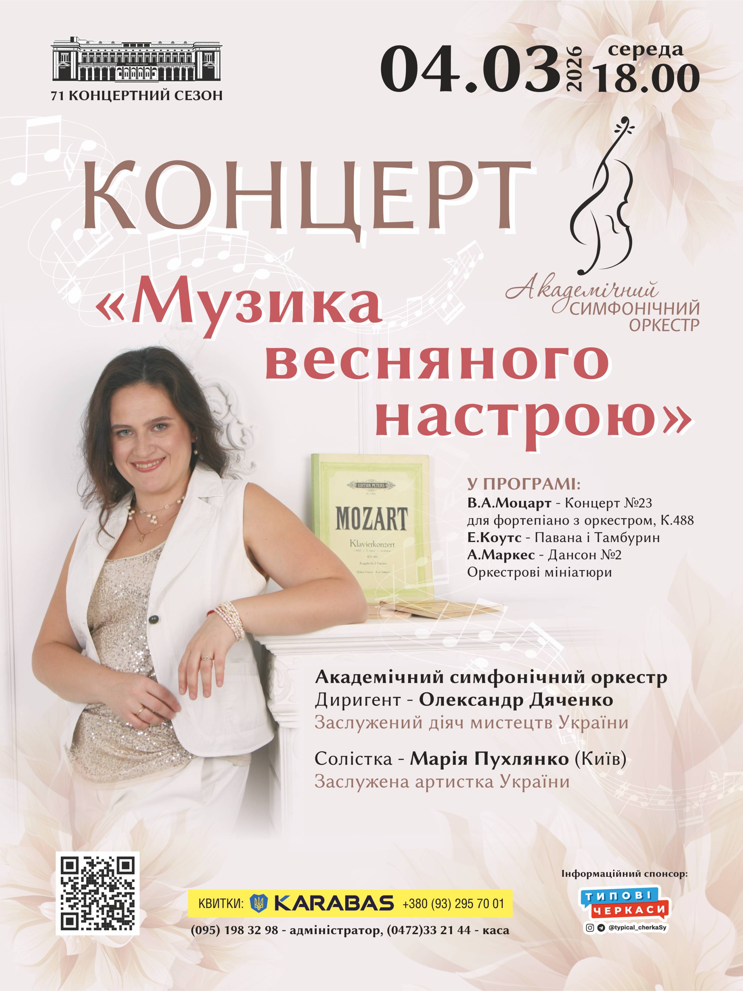 Академічний симфонічний оркестр Черкаської обласної філармонії під орудою заслуженого діяча мистецтв України Олександра Дяченка відкриває весну з концертною програмою «МУЗИКА ВЕСНЯНОГО НАСТРОЮ»!