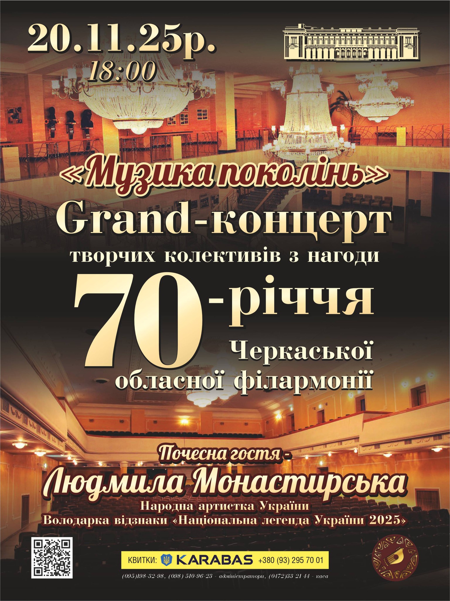 70 років — три покоління таланту, натхнення й музики, що творили мистецьку історію Черкащини! Сьогодні естафету Легенд приймає сучасна музична еліта!